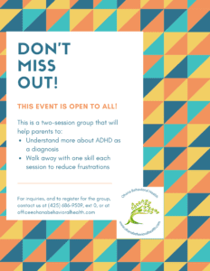 We offer support groups, workshops, group therapy, and skills training for adults, teens, children, and parents.