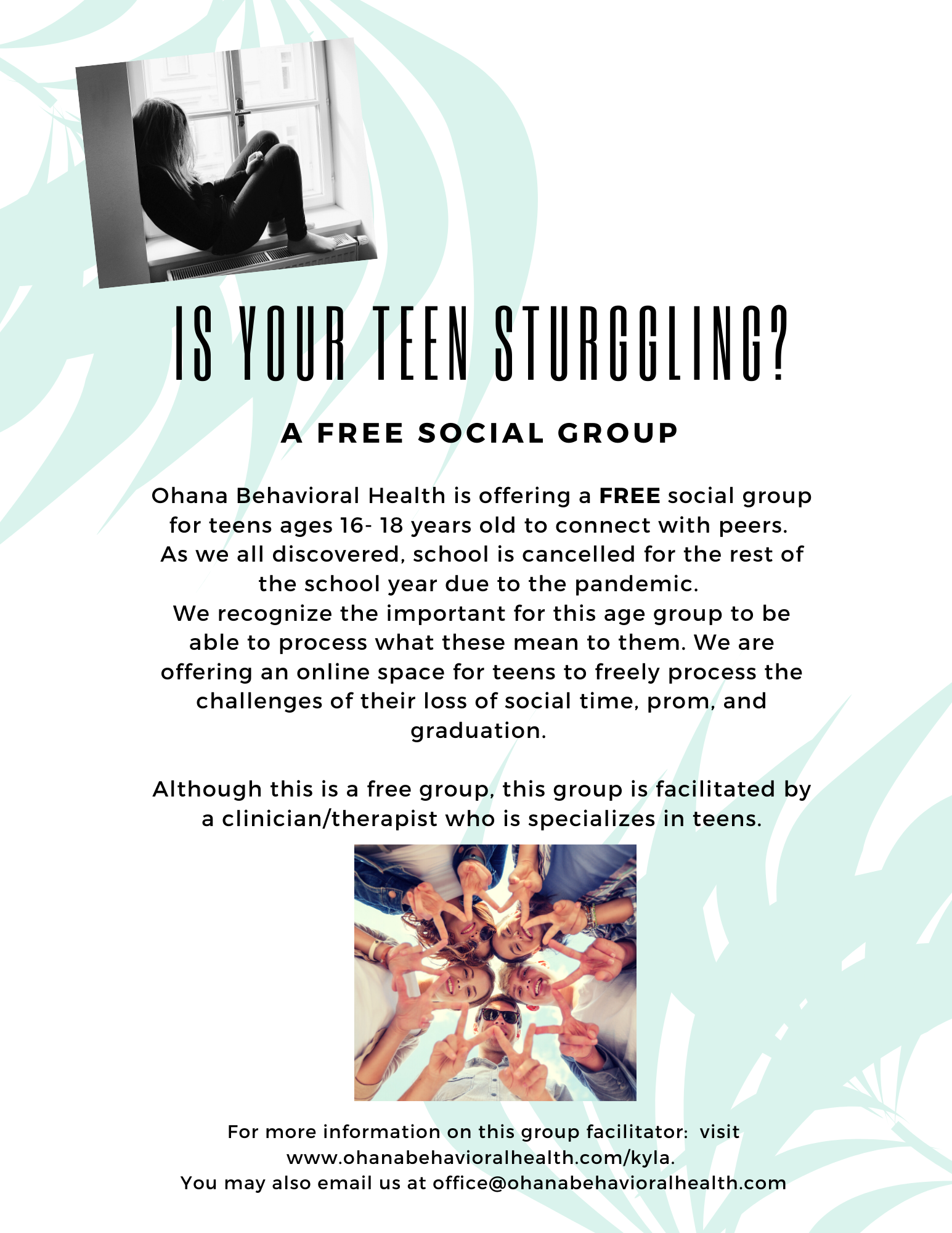 Whether you’re a parent who is looking to enhance your parenting skills or you are a teenager who needs support in dealing with struggles at school, with peers, or at home, we’re here to help.